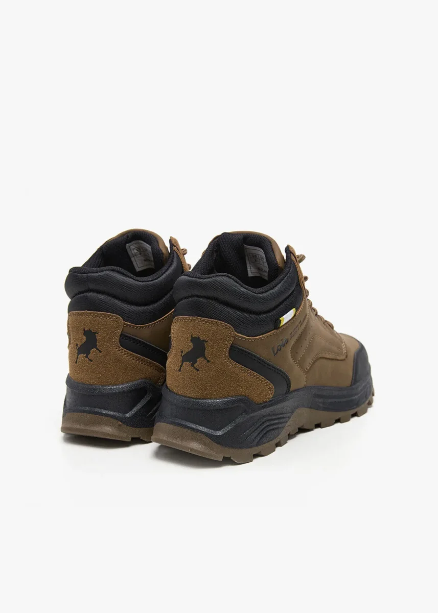 Bota casual confeccionada em nobuck pu com forro acolchoado e palmilha respirável. Colarinho têxtil acolchoado. Fecho ajustável com atacadores em duas cores para garantir sustentação. Sola de borracha antiderrapante.