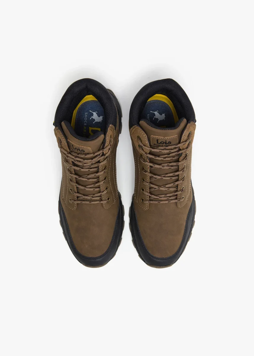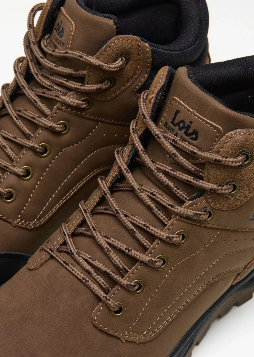 Botim casual com atacadores com detalhe no calcanhar castanho