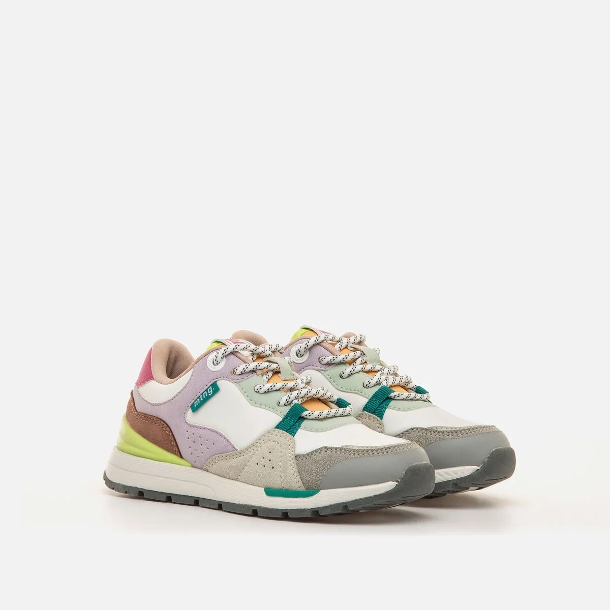 Ténis multicoloridos para menina da marca Mtng, modelo Compact, com estilo casual e desportivo. Este design combina tons pastel com detalhes em rosa, verde, lilás, cinzento e castanho, proporcionando um visual divertido e atual. A sola robusta com tecnologia Extralight torna-os mais leves e confortáveis para usar durante todo o dia, enquanto o fecho com atacadores oferece um ajuste seguro. Conta com acolchoamento no calcanhar para maior conforto e biqueira reforçada que melhora a durabilidade. Perfeitos para o uso diário, estes ténis adicionam cor e conforto a qualquer conjunto informal.
