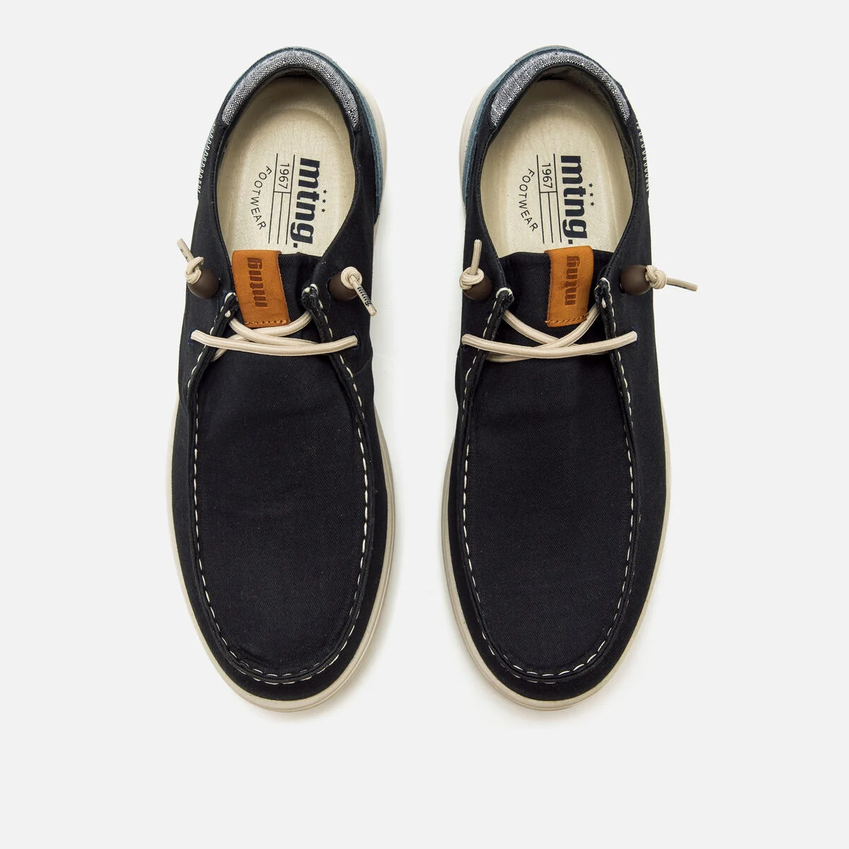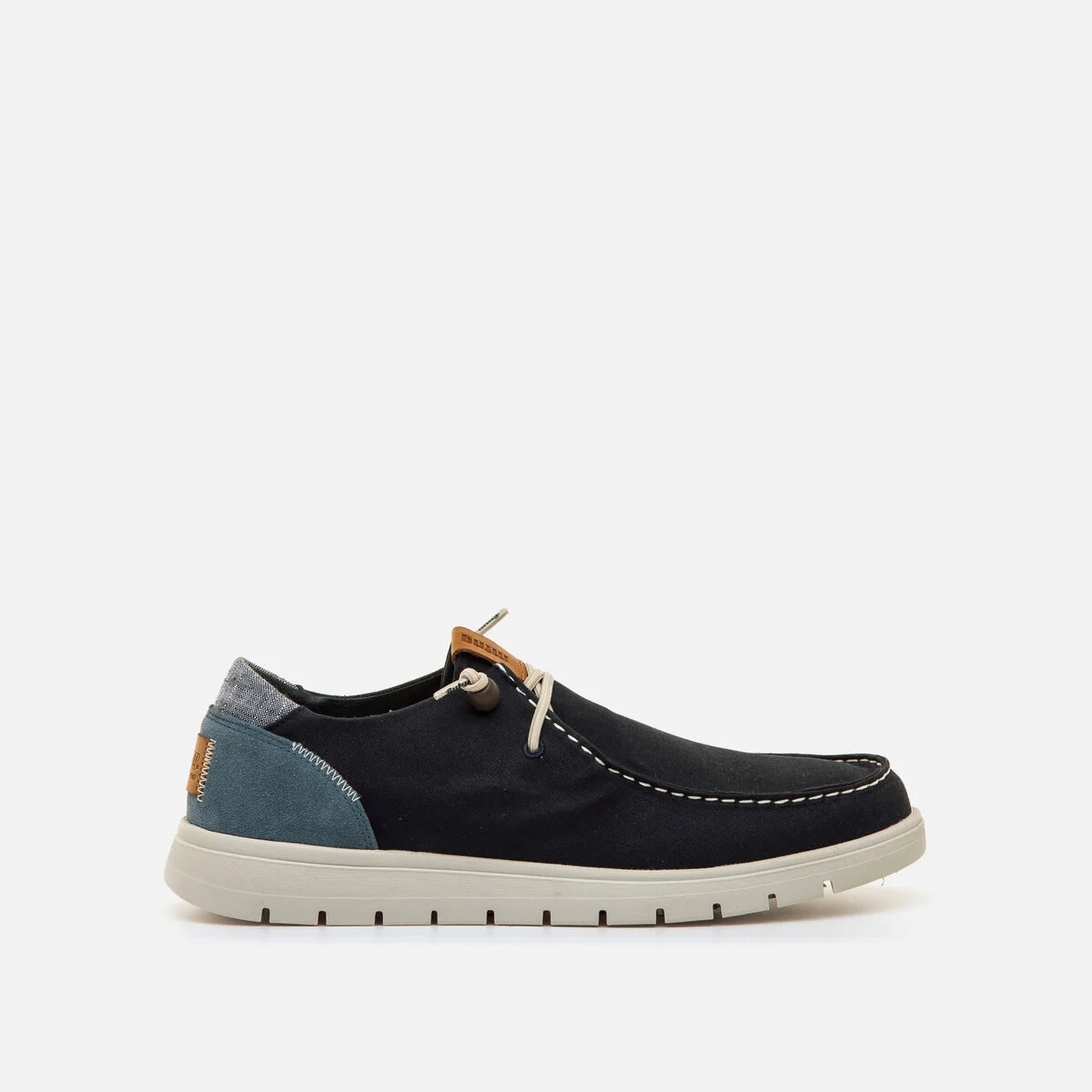Sapato tipo náutico de cor azul-marinho para homem da marca Mtng, modelo Denver de estilo casual. Apresenta uma construção leve com costuras visíveis em contraste e detalhes em atacadores e sola brancos, proporcionando um visual relaxado. A parte traseira combina diferentes tons de azul e texturas que reforçam o seu design original. Incorpora sola com tecnologia Extralight que proporciona maior leveza e amortecimento, e palmilhas Starfit, com espuma que proporciona uma passada acolchoada e aumenta o conforto.