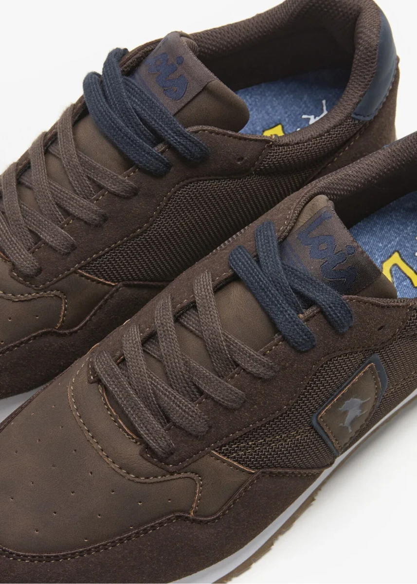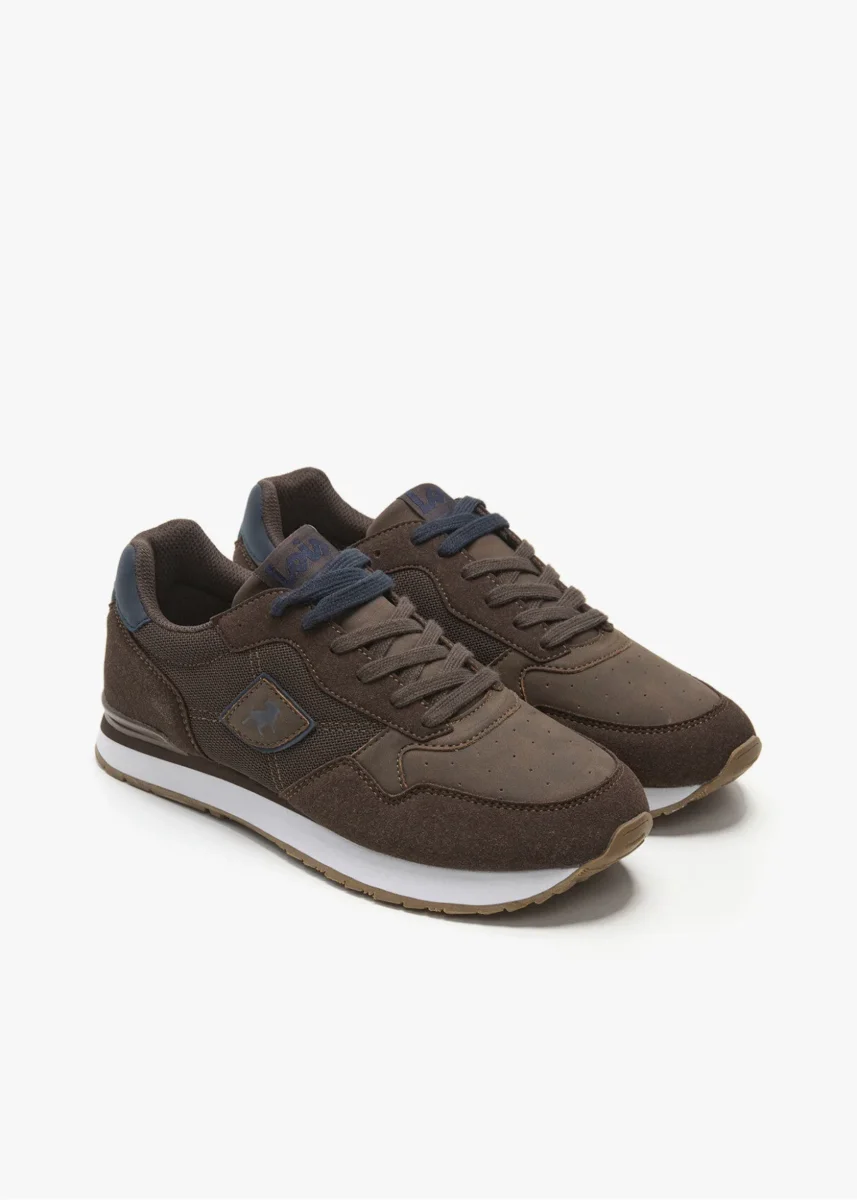 Tênis estilo corrida urbana, confeccionado em couro sintético e tecido em cores contrastantes. Interior macio com acolchoamento na gola e forro têxtil. Palmilha de espuma respirável anatômica para conforto diário. Fechamento com cadarço. Sola com entressola tricolor em EVA e base de borracha antiderrapante para maior estabilidade.