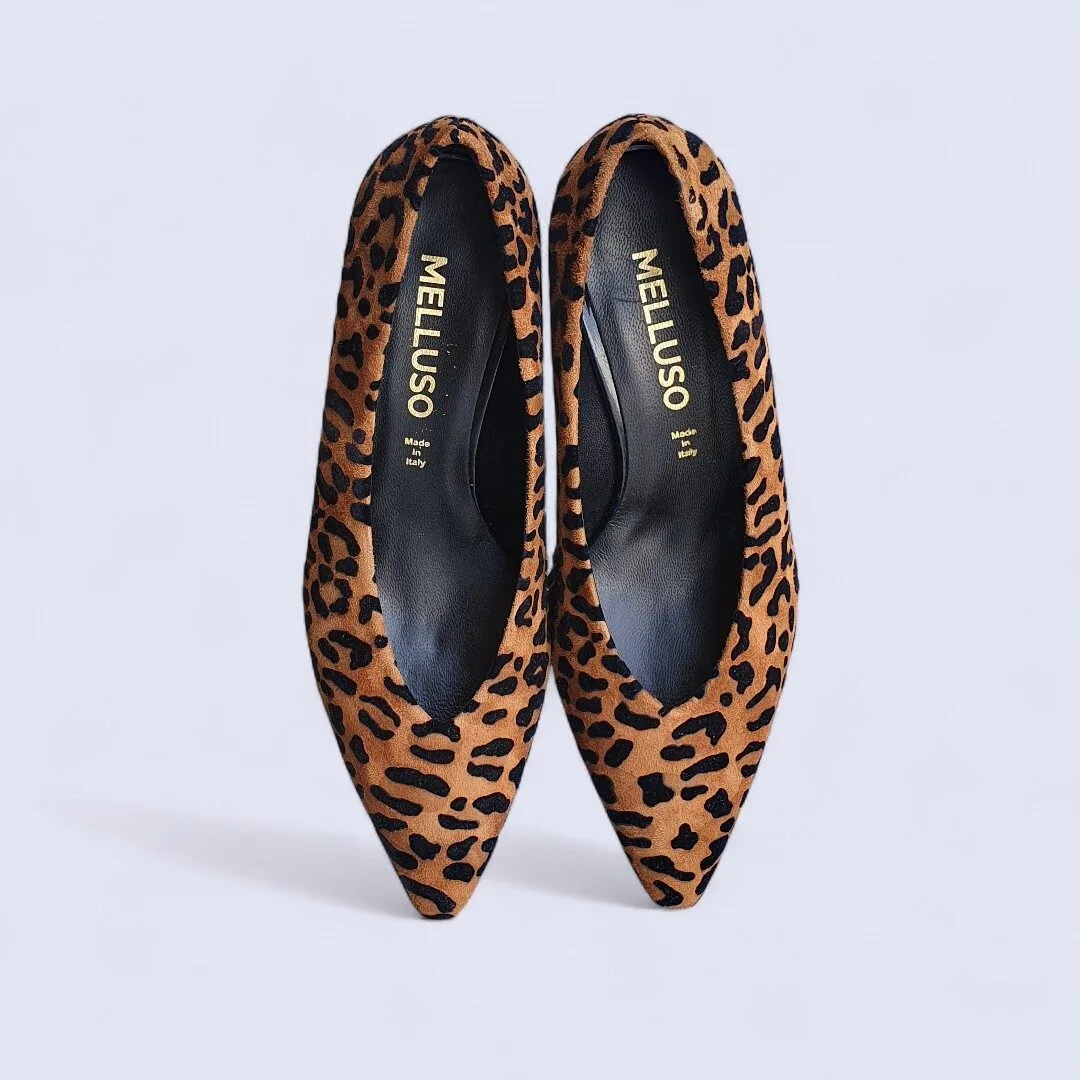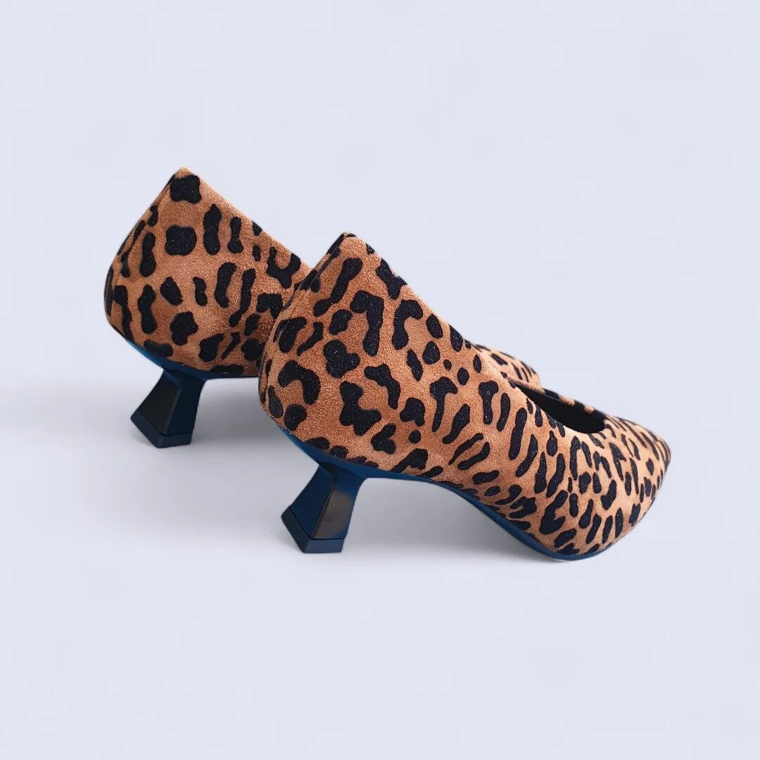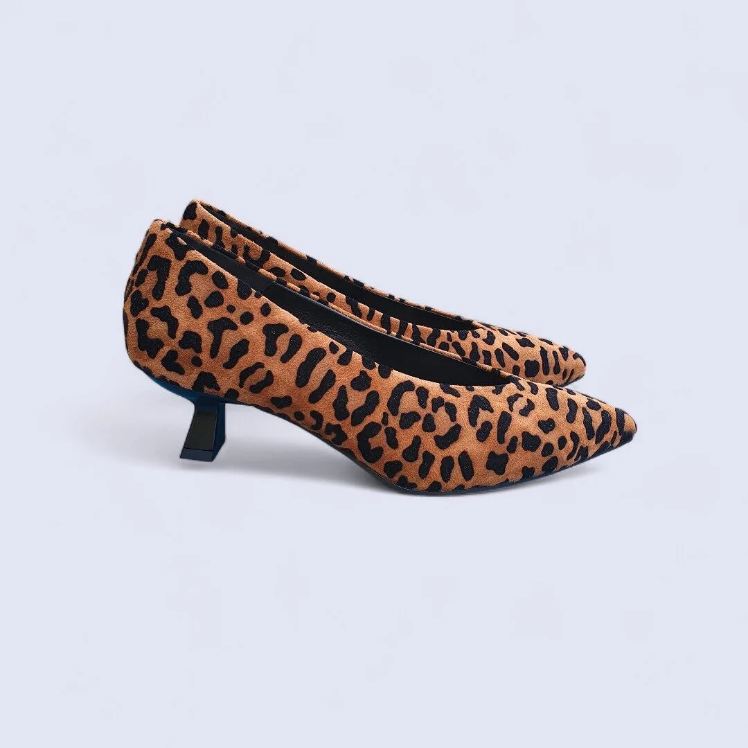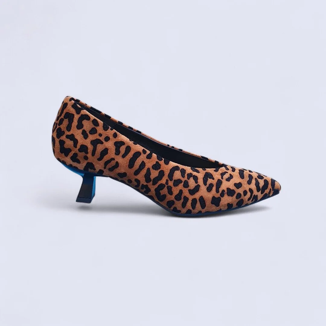 Estilo marcante e conforto no mesmo passo. Este sapato em pele de camurça exibe um elegante padrão leopardo, perfeito para dar um toque de personalidade ao seu look. O salto de 5 cm proporciona a altura ideal sem comprometer a estabilidade. A palmilha interna em espuma viscoelástica adapta-se à forma do pé, garantindo um ajuste confortável ao longo do dia.